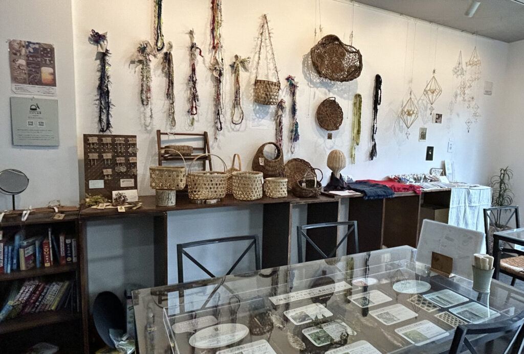 鎌倉こげら工房と草木細工Laboが地元の手しごと仲間と、北鎌倉台峰のお膝元、ギャラリー&カフェ伊左衛門で、鎌倉の野山で出会う籠作りや工作に使える蔓や樹皮などの素材と、それを使った作品の展示をしています。