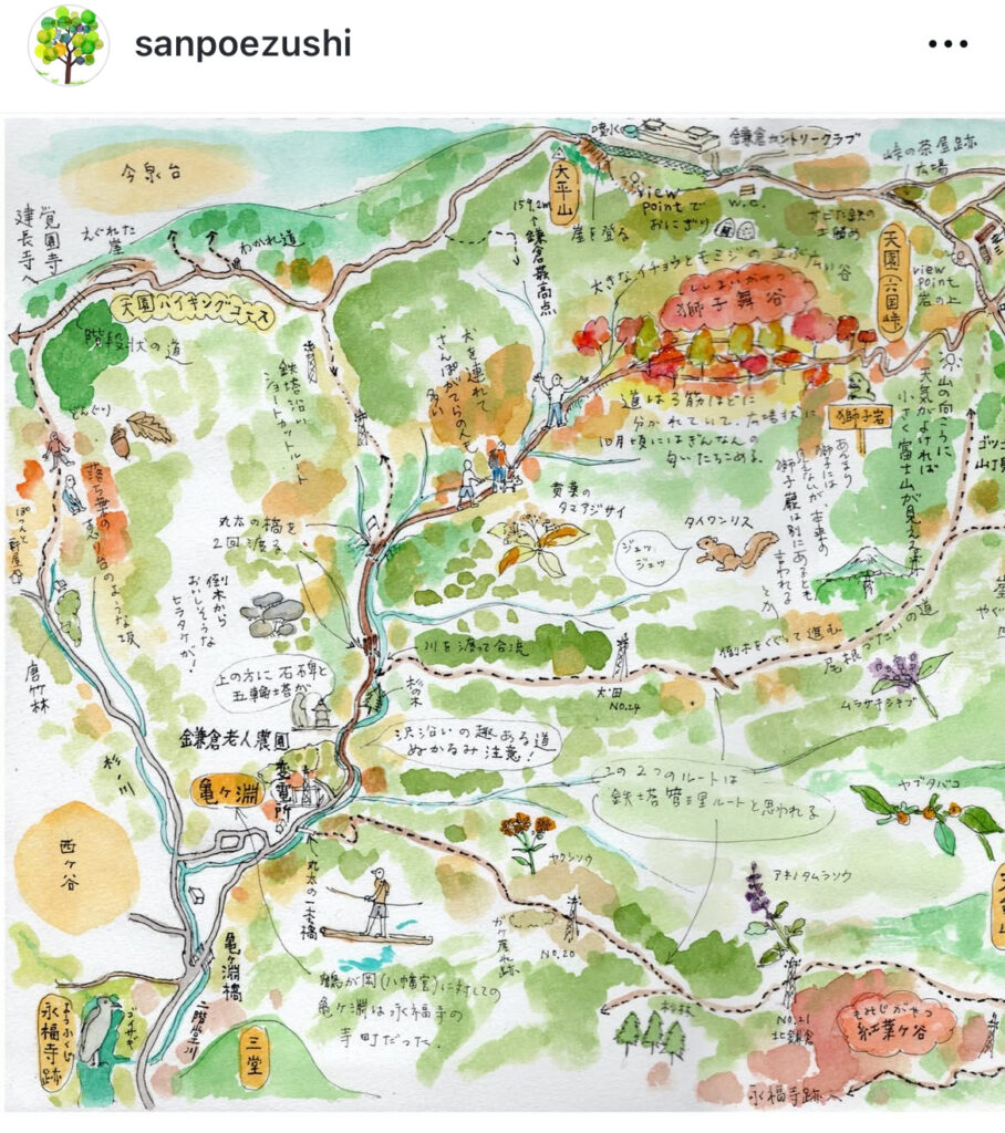 他にも鎌倉、逗子や山歩きに実際に行かれた色んな場所の絵地図をアップされています。